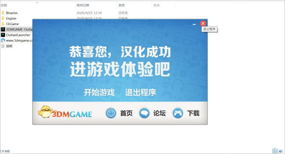 7、汉化补丁安装完成后,选择退出程序;(先不要点击开始游戏!!!)
