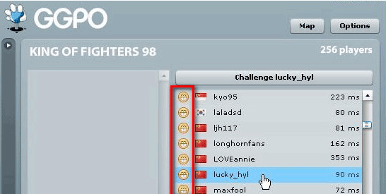 6、运行“GGPO”,输入用户名和密码后点Login进入平台点左侧的the king of fighters 98房间,如下图: