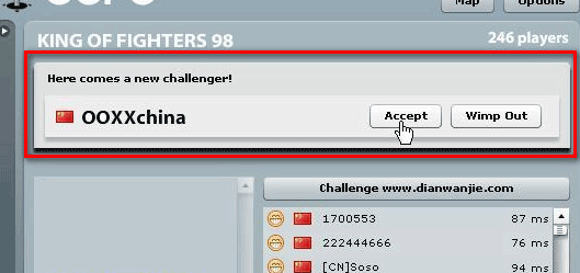 如果接到其他玩家对战邀请时,点“Accept”接受对战,点“Wimp out”拒绝对战,如下图: