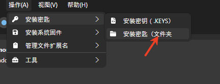 在模拟器左上角点击 操作-安装密匙-目录下选择 Firmware 20.5.0 进行安装即可