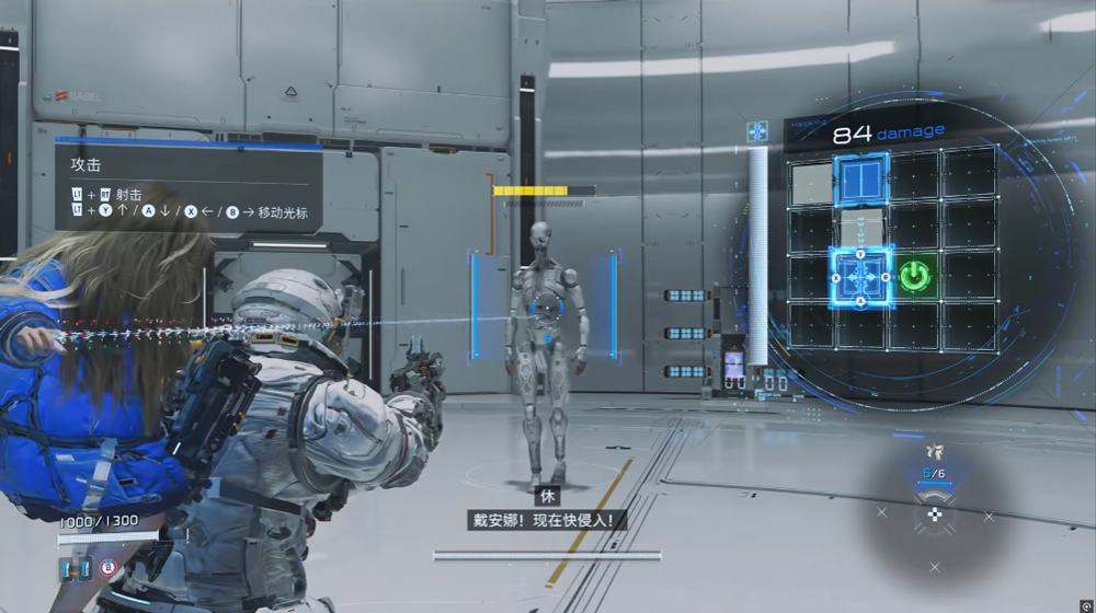 1、玩家需操作休进行第三人称射击,同时切换戴安娜视角破解3×3至5×5网格的黑客小游戏,削弱敌人装甲后造成有效伤害;