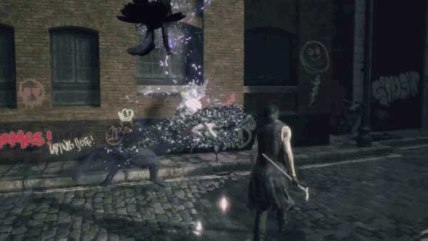由于V本身基本上没有战斗力,所以需要差遣使魔攻击。普通攻击有Shadow的近距离攻击,以及Griffon的远距离攻击。恶魔变成濒死状态后,再由V以自己的手杖终结其生命。