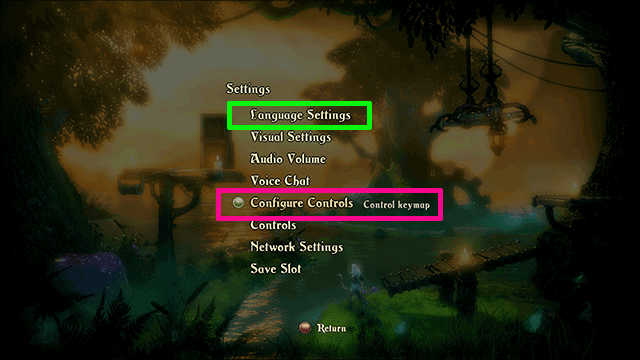 3、这里大家可以点击第一个选项(language Settings)将语言调为中文,不过我们还是来看看怎么控制人物移动吧,选择并点击红色方框内的选项;