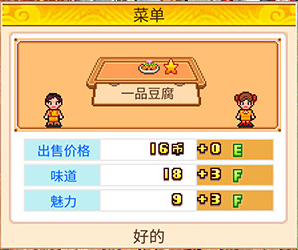 在《美食梦物语》中同一家店铺内可以设置许多相同的菜品,本作中修改了这一设定,同一家店铺中设置的菜单不可重复。