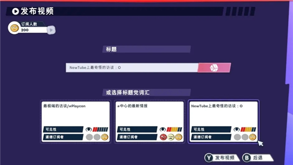 录制完成后,需要进行的就是剪辑和上传。玩家需要的是将视频的片段按顺序剪切到一起,使其首尾相连,如果做不到的话就只能忍痛删除部分片段或者花费点数进行编辑了。而在剪辑完成后,玩家需要选择封面和标题。其中标题也会起到引流的作用,而本作也可以让玩家过一把营销号标题党的瘾,秀一把UC体功底,看看能涨多少粉丝量。结果也是很容易能够猜得到,这也会不同程度上的激怒一般通过网民,让玩家受到道德批判,还是要慎用,把握好频率。