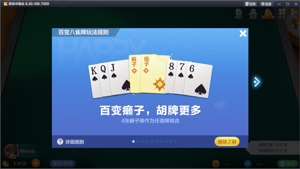 3、海量玩法,超级五炸、跑得快、干瞪眼、逆转接龙、血流成河、99牌全都有,总有一款你爱玩。