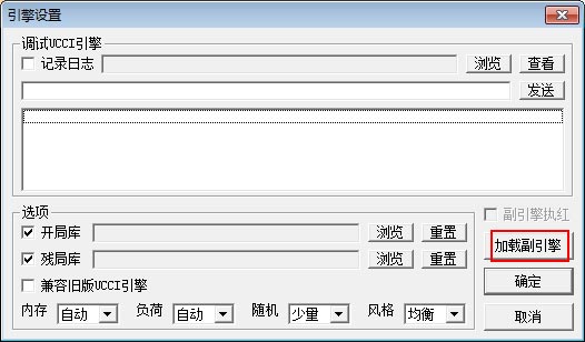 A:打开电脑菜单的设置参数对话框,点击加载副引擎按钮,可以加载另一个引擎。两个引擎对战时,必须同时按下引擎执红和引擎执黑,到底哪个执红哪个执黑,取决于副引擎执红是否勾上。