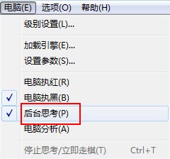 A:在与电脑对弈时,如果在电脑菜单的后台思考项前打钩,那么在用户走棋的时间内电脑同时进行思考,这样会适当提高电脑的水平。如果选项设置对话框中打开了启用后台思考选项,那么启动象棋巫师或新建对局时,后台思考按钮会自动按下。打开电脑分析时,猜测的应着在思考路线中用加了括号,之后的着法才是电脑的思路。