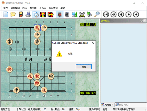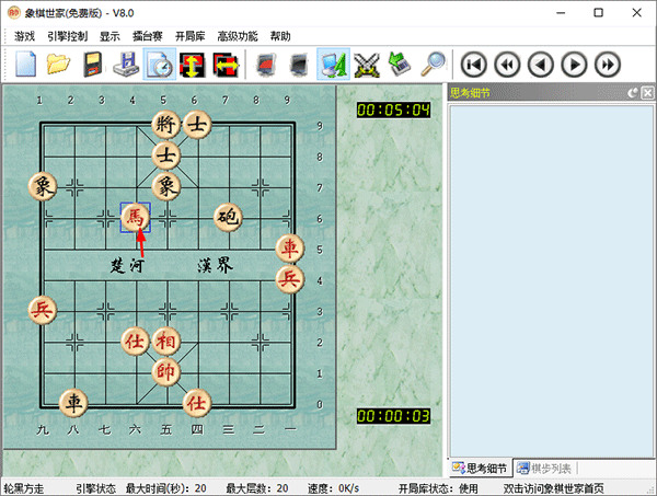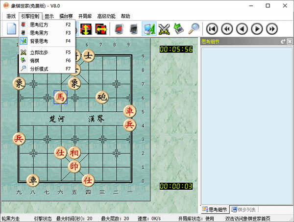 4、同时还可以选择红方、黑方思考、AI引擎等等;