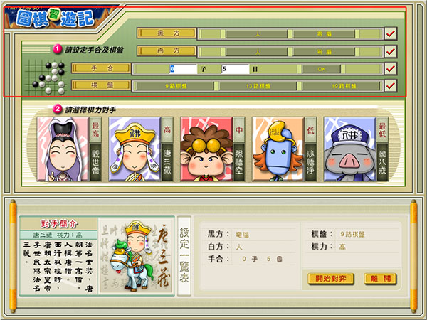 围棋西游记中文版是一款以西游为主非常好玩的围棋游戏。讲到围棋,小编也玩了好几年,各种玩法小编都尝试过了一遍,直到今天见到了围棋西游记,这是采用了西游记的人物制作的围棋游戏,玩家需要从观音菩萨、唐僧、孙悟空、猪八戒、沙悟净中选择一名进行游戏,每个章节都加入大量实战习题,并随程序赠送9路、13路人机对弈软件,您可现学既练。
