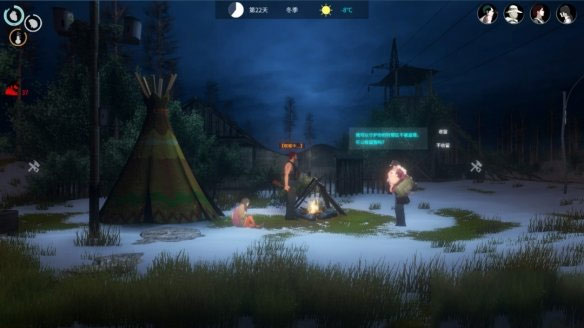 除了固定数值这套基础能力外,每个角色还存在着一套消耗属性,这其中包括了日常探索过程中消耗体力的速度、自身体温、睡眠以及一些与“生存”产生更加直接的数值,当天冷时玩家需要前往火堆进行取暖,而如果身在野外喝下两口烈酒同样会起到取暖的效果,不过也会伴随着醉酒的情况失去了方向感,到了炎热的区域角色的水分会蒸发地异常猛烈,此时储备大量的水源就成为了关键,像这样的设计几乎充斥在了每一个角落,而这也让本作成为了一款很难去“随便玩玩”的游戏。