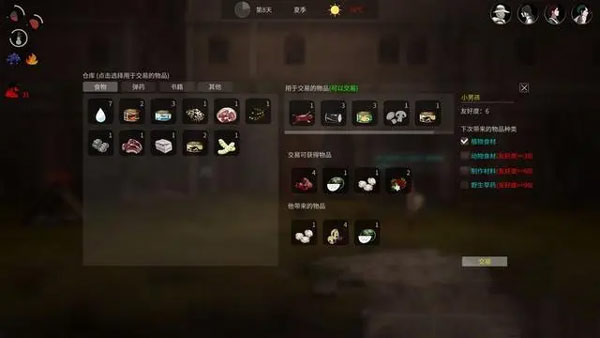 在流程中还会偶遇到一些NPC角色,他们往往都是会直接跑来你的营地和你对话,部分角色会希望和玩家展开交易以物换物,这在游戏的初期也是一些优质食材物品比较有效的收获渠道。除此以外玩家还可以收留一些希望和玩家共同进退的角色,带领他们一同生存下去,在日常的探索和入侵的过程中,这些NPC有时也会起到一些比较关键的作用,同样也为游戏在“运营”这一层面带来了不小的可玩性。