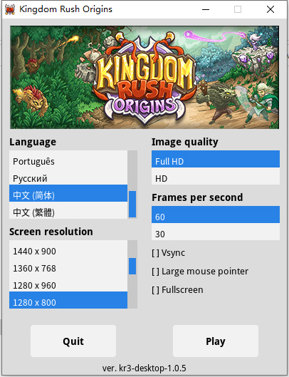 2、在解压文件下找到并打开“Kingdom Rush Origins.exe”文件后跳出一个相关的运行界面。