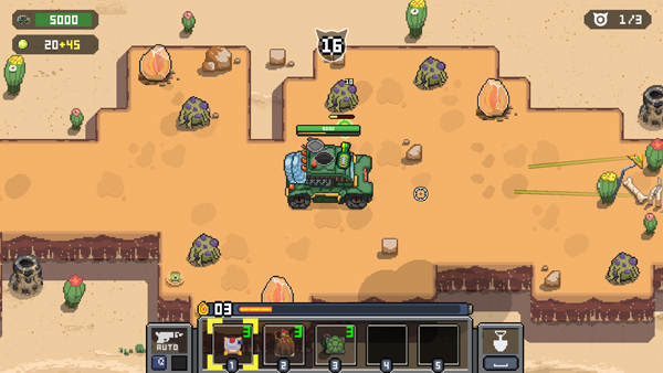 鸡械绿洲中文版是一款策略塔防Roguelike射击游戏,英文名叫Cluckmech Oasis,玩家在游戏中将化身战斗鸡和它的伙伴们,你需要驾驶基地车在旅途中收集各种各样奇怪机械,以此来击杀铺天盖地的植物敌人,并在最后拯救这个世界!