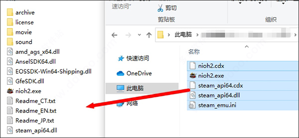 2、接着把CODEX文件夹里面的全部补丁文件,也就是游戏补丁全部复制到Nioh2文件夹下;