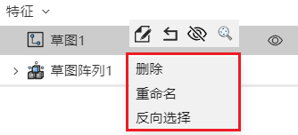特征右键菜单如下图,可进行特征的再编辑或回滚等操作。