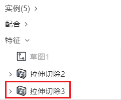 在装配体中直接创建拉伸切除特征,对某一零件进行拉伸切除操作。