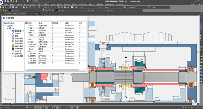 针对机械实体的图层进行自定义设置,比如符号、标注等的图层属性,人性化管理图纸标准。