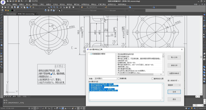 提供机械加工中常用的、典型的技术条件文本,便于机械工程师一键调用,同时可导入txt格式的技术条件文本,便于管理。