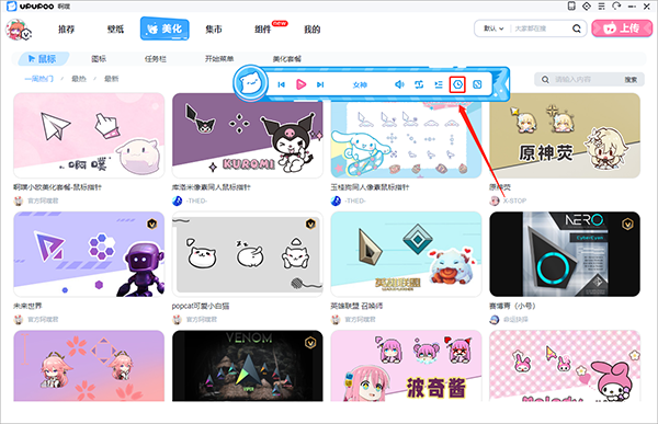1、打开UPUPOO动态壁纸桌面,点击页面右上角的啊噗喵。