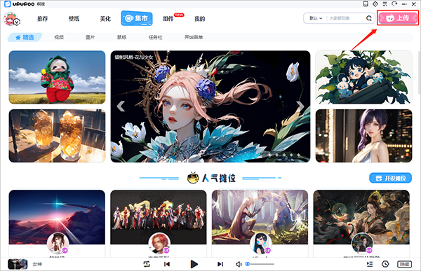 5、此外,你还可以通过点击右上角的【上传】按钮,将自己电脑中的壁纸导入进来设置成电脑桌面壁纸。