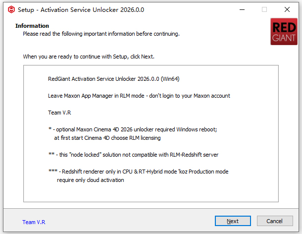 3、再安装RedGiant-2026.0.0-Win.exe,安装完成之后关闭即可;