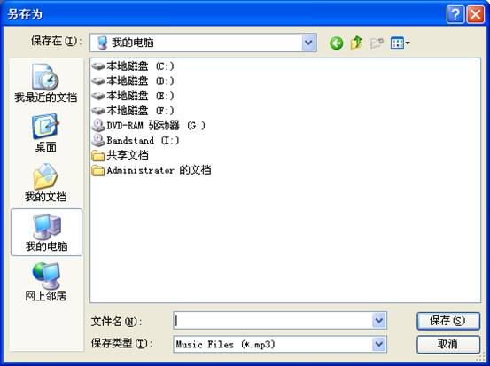 此时,可以选择保存路径,将录制的mp3数据,保存到您的硬盘里面。该mp3可以用普通的播放器进行播放;也可以复制到手机,或者mp3设备里面,进行播放;也可以发布到网上,供朋友欣赏。