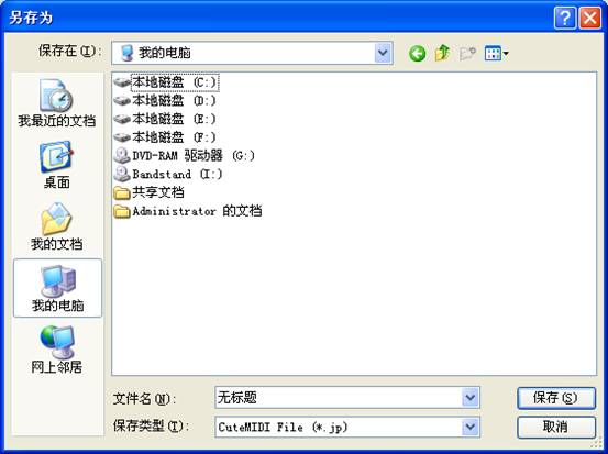 通过对保存类型的选取,可以保存为CuteMIDI(*.jp)格式,同时可以重新选择文件的路径和名称。