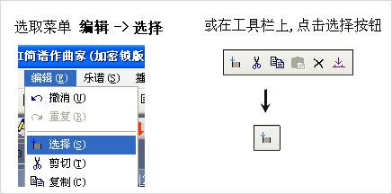 点击“编辑”菜单,选择“选择”选项如下图:将会弹出选择范围设置,参见:快速入门篇中的复制,粘贴操作