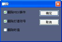 注意:删除时值选项,如果在该选项前,打上对勾,则删除数据同时,还会将该范围的时间值删除,后面的音符,将会向前移动。不打上对勾,则仅删除该范围的音符和符号,后续部分的音符,不会前移。参见:删除小节部分。