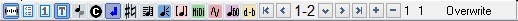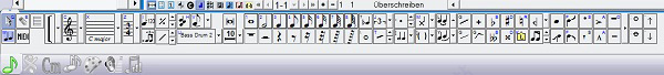 包含一组微型按钮:显示主导、显示整个文件/活动部分、每行一/二/全页、显示转换的音符/显示实际音高、彩色/无效灰色的声音、显示名称的注释、显示服务符号、改变模式:意外添加影响一个音符/所有音符、停用时间签名:空闲时间、卷编辑器、钢琴卷编辑、MIDI事件编辑器、声音编辑器、速度编辑器、歌词编辑器等。