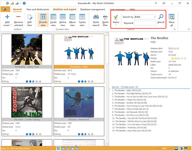 该CD库存软件将自动下载来自互联网的专辑信息,包括艺术家、标题、发布日期、封面等。此外,您可以选择数据库进行搜索。