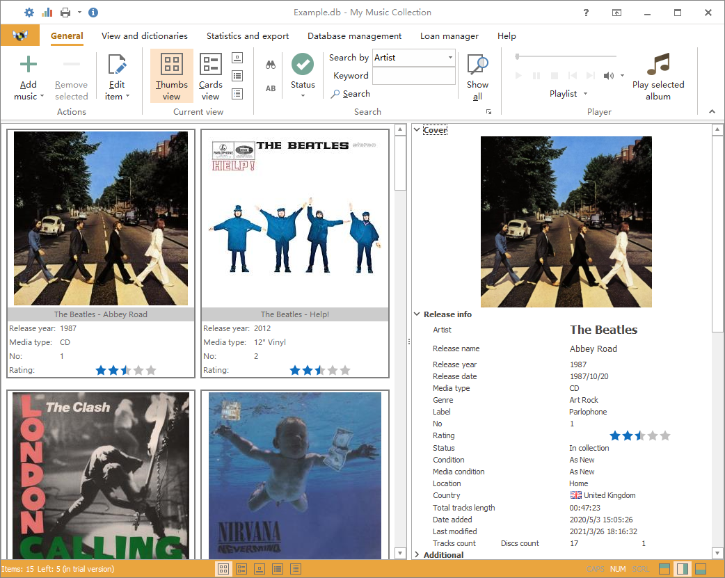 最近我发现了一款管理音乐收藏的神器——My Music Collection电脑版。作为一个喜欢收集实体唱片的人,这款软件简直太适合我了!它不仅支持CD、黑胶等实体介质,还能自动读取专辑信息,甚至可以通过条形码快速添加到库中。最让我惊喜的是它的分类功能,我可以随意创建自己的标签,比如按歌手、年代或者风格来整理我的藏品。