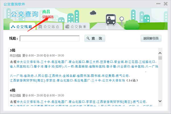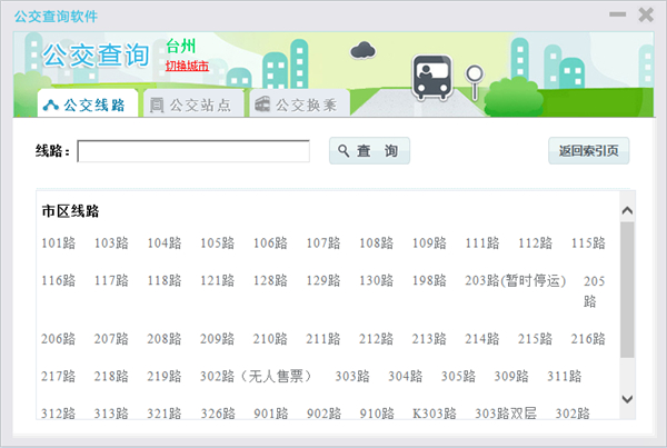 公交查询软件是客运公交查询网推出的桌面客户端版本,其主要目的是为了满足群众的出行需要提供出行查询指南服务。公交查询软件实现了全国200多个城市的公交站点到站点的查询、公交线路及最佳换乘线路的查询,操作简单、方便,用户只需要输入关键字即可找到需求的公交路线、公交站点和最佳的公交换乘方案等,有需求的朋友请下载使用。