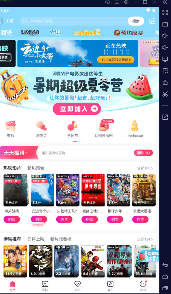 淘票票电脑版是一款借助模拟器运行的影院订票软件,是由知名企业淘宝网络有限公司实力打造,能为用户提供附件电影院门票等各类演出类票的在线订购服务。