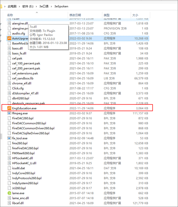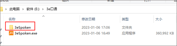 2、安装好了以后,电脑里面就多出来了这个“3eSpoken”文件,选择这个文件夹中红色框框选中的应用程序并双击鼠标左键打开它。