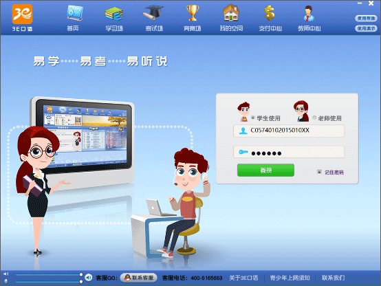 3E口语智慧英语学习平台是以自主学习,备战考试为核心的学习平台,为老师提供英语听说教学的辅助工具,是45分钟课堂教学的延伸,帮助解决老师教改、考改等相关问题;是家长辅导孩子英语学习的家教、能够及时准确了解孩子英语学习情况的帮手,解决家长指导孩子英语烦恼;是学生通过自主性学习提高英语听说能力、逐步适应英语考试改革的智能家教,帮助学生提高英语综合运用能力,是教师、家长和学生逐步适应英语教改与考改的最有效工具!