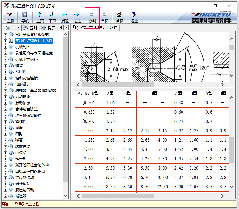 -机械工程师设计手册软件界面左侧是目录区,右侧是数据资料区。在目录中点击一项,该项内容就会显示。软件显示清晰,翻页流畅。