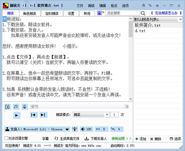 3、默认调用系统(Windows 7)自带的Lili、Anna TTS,支持附加语音库。