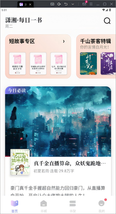 潇湘书院电脑版是一款基于安卓模拟器运行的女频小说阅读软件,它专注于孵化阅文女频精品佳作,打造出题材更有创意、文笔更加精妙、角色更富魅力的新经典。它的分类众多,言情、科幻、仙侠、玄幻、宫廷等应有尽有,涵盖了所有你喜欢的种类,它还有海量热门影视作品的原著小说,而且推送算法智能,可以精准推送你最喜欢的小说类型。除此之外,它的操作便捷,没有广告的侵扰,阅读器设置可以自由设定翻页模式、间距、背景等,保护你的双眼,还有书评、章评等互动平台等你来玩,这样的全方位阅读平台,还不赶紧来下载体验一下?