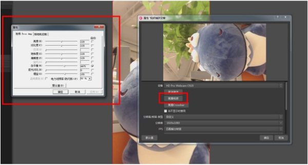 3、选择相对应的摄像头,反键点击视频捕获设备→属性→配置视频,可调节摄像头相对应的技术参数;