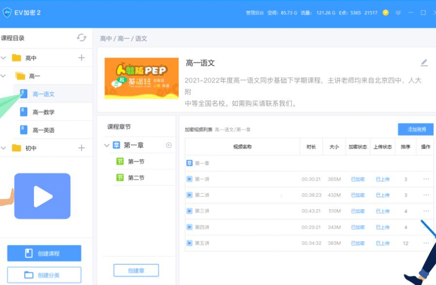 EV加密2是由湖南一唯信息科技有限公司出品的一款视频加密软件。这款软件采用AES加密算法,同时加密后即时上传到服务器,实现文件不落地,加密后的视频,只有拿到老师创建的账号才能够登录官方加密播放器进行在线解密播放。EV加密2能够一键加密整套课程视频,并且可以云同步上传加密视频,支持学员账号灵活控制授权,可在线观看加密视频,有效保护您的原创内容,界面简洁,使用简单,能够极大程度保护用户的隐私安全,以防重要资料泄露。