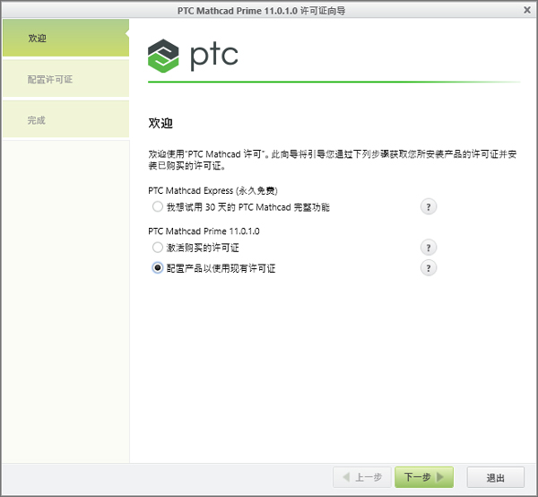 6、运行PTC Mathcad Prime,选择配置已使用现有许可证;
