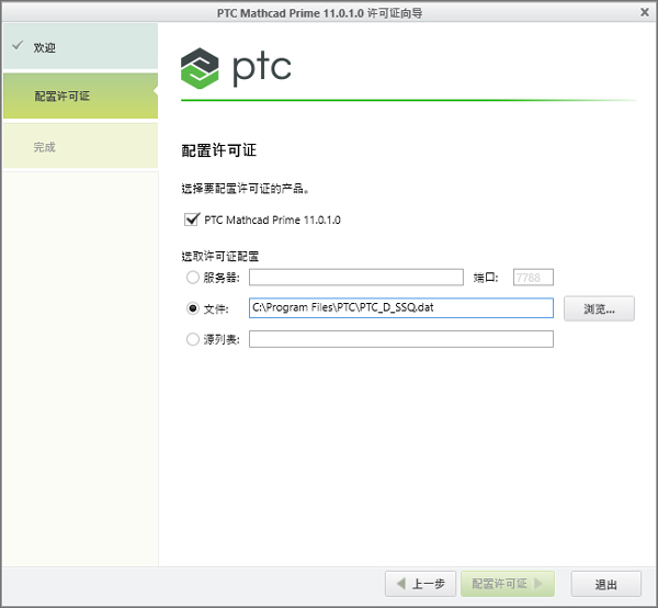 7、以文件方式,加载许可证文件C:\Program Files\PTC\PTC_D_SSQ.dat;