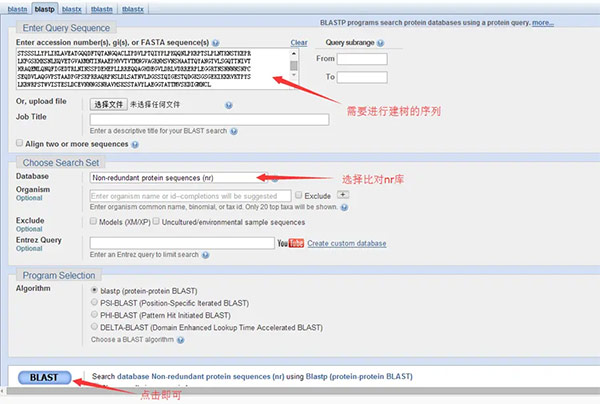①取一条目标氨基酸序列,在NCBI的blast板块进行下比对: