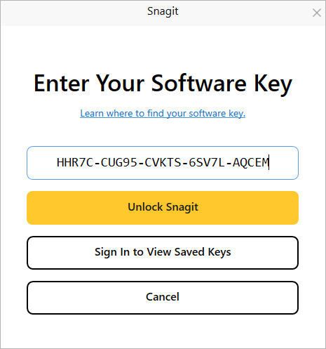 7、打开软件,输入激活码后,点击unlock snagit即可激活;