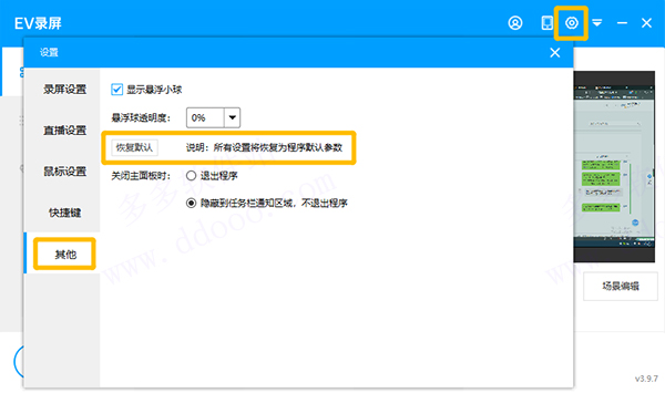 (2)如果没有录到目标内容,只录到内容后方的桌面时,EV录屏-“设置”-“录屏设置”,勾选“抓取窗口加强”。