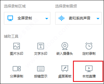 2、支持“录制存盘”和“直播分享”