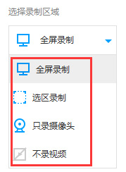 5、支持桌面“任意选区”录制与“全屏”录制