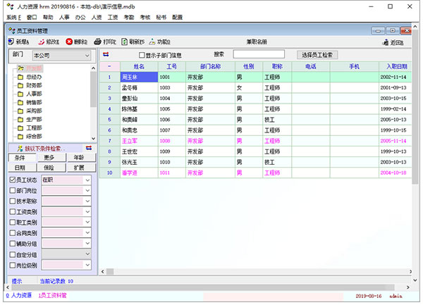 9、支持辅助数据管理(人力资源软件)(单机免费)